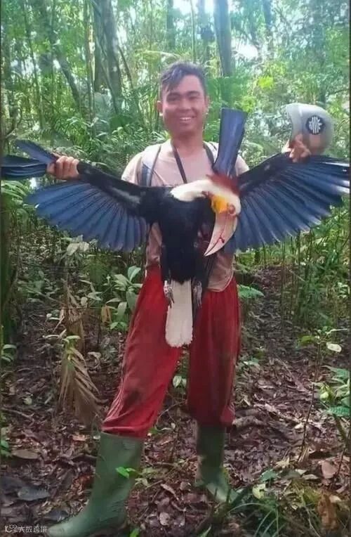 这名名叫波比安·西罗(Bobiean Siro)的男子将他狩猎犀鸟的照片上传到了他的Facebook账户上,并配文说明:“我进入森林杀死了这只鸟。”