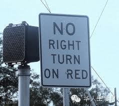 在美国特别是洛杉矶,有很多十字路口红灯时,不能右转,一定要看清标记。红灯时右转,加微信华人生活网,先要停几秒,即使对面和左边没有车辆行驶过来,也要停稳,再行。有些路口设有红灯时不许右转指示牌,如果你没注意,被摄像头拍下,或被警察拦下,会被当闯红灯算,罚单大约是450美元左右。