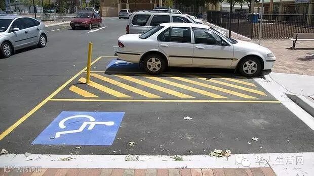 如果你车上都是健全的乘客,千万别停在残疾人车位。在美国所有公共停车场所,都有专门为残疾人留下的车位,通常都是最方便的车位。如果你停在那些车位,而实际上又没有不方便的人士在车上,等待你的可能就是高额罚单了!