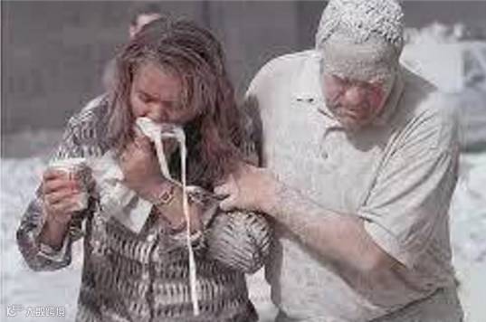 右侧这张照片定格住了9·11事件亲历者逃出生天的表情——惊慌失措。照片主人公也被称为“灰尘女”。