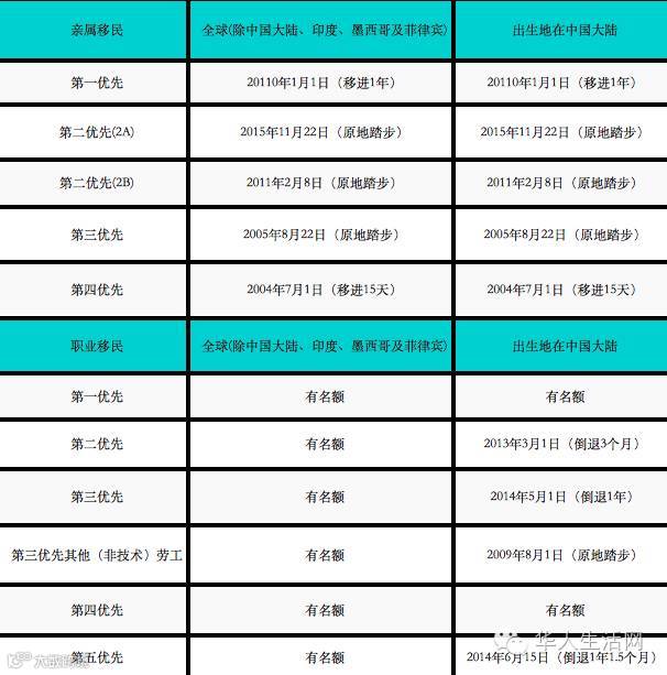 亲属移民的“绿卡最后批准排期”(Application Final Action Dates,简称“绿卡批准排期”),港澳台及中国大陆出生申请人同步移进。
