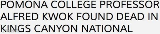 美国波莫纳学院(物理天文学系的华裔教授郭绍隆(Alfred Kwok),日前独自前往国王峡谷国家公园(Kings Canyon National Park)登山健行失联。后来官方证实,他已经遇难身亡。