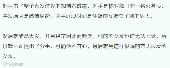 据了解,凶手的前女友受伤很严重,目前仍在医院接受救治中,而死者是凶手的小姨子,她完全是属于无辜中枪遇难,因为根本就不认识凶手。