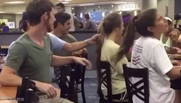 此次扇耳光事件发生在北卡罗来纳温盖特大学的一所餐厅内。前几天,这则有趣的短片由拍摄者塞缪尔-格拉布(Samuel Grubbs)上传到社交媒体,迅速刷爆网络,很快就获得4700万次点击。