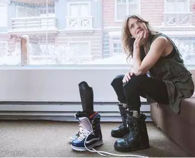 接下来的一年中,她不断研究假肢的设计,甚至亲自动手,用螺栓、橡胶、木头和亮粉色胶带,做出了舒适且能变换指甲油颜色的假肢。