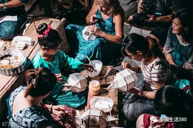 说到天灯节,肯定大家都很好奇这个灯笼到底是怎么制作的?在塔佩门游玩的时候,我看到了有一群人坐在地下,用剪刀踩着纸,去把所有的纸融在一起,相信这就是天灯节的最初的样子。