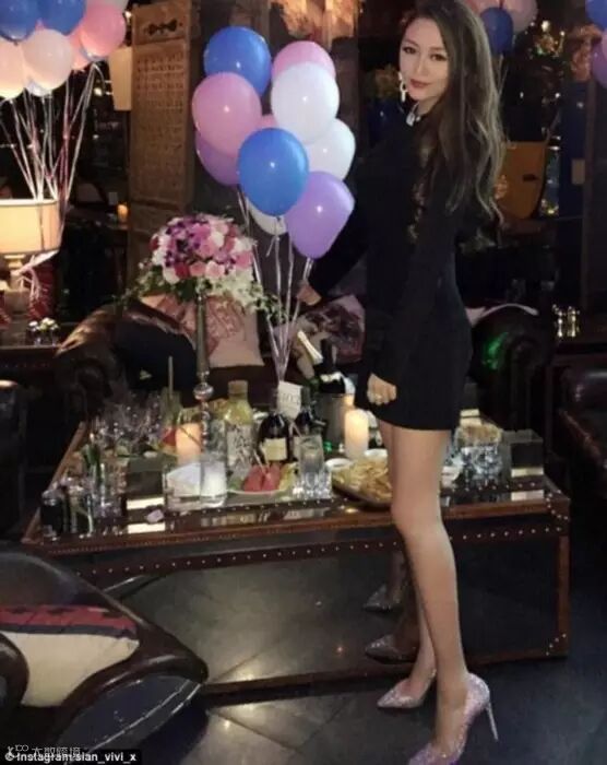 图为思安(Sian)在一场派对上的照片,背景中美酒佳肴琳琅满目。