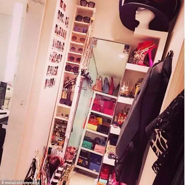 《公主我最大》第二季的主角之一Weymi在台湾长大,十四岁的时候随父母移居到了温哥华,并在这里进入了一家寄宿学校。她的父母都是大陆人,在台湾做半导体生意,他们把Weymi姐妹送到了某国际学校上学,就是为了以后送她们去国外读书。在上大学之前,她们常常在美国和澳洲度假。这个21岁的女孩认为自己并没有炫富,只是在分享日常生活。图为Weymi摆满了时尚单品的衣橱。