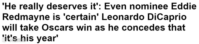 连他这次的竞争对手小雀斑在颁奖典礼之前也说'He really deserves it'——“(奥斯卡)是他应得的”。。