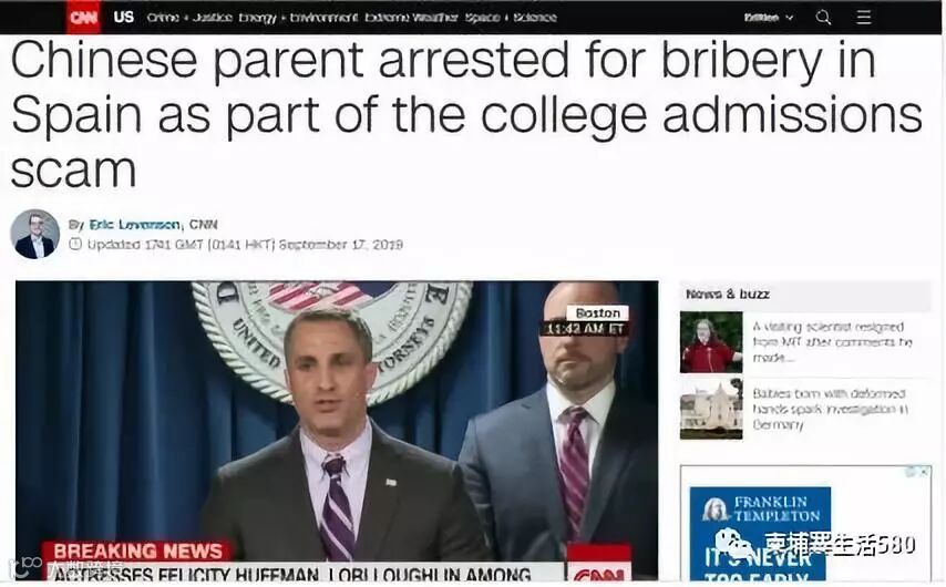 报道还提到,而在此招生舞弊案中被捕的35名家长中,截至目前仅1名家长被判刑——女演员哈弗曼(Felicity Huffman)于上周被判14天监禁。