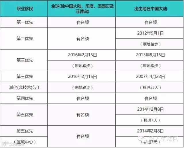 职业移民的“绿卡批准排期”,对港澳台申请人来说,所有类别都无更动。