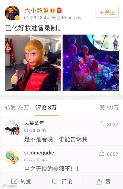 但是!让人失望的是,猴哥这次参加的并不是央视春晚节目的录制,而是央视戏曲春晚的录制,晚会暂定于大年初三(2月10日)晚在央视戏曲频道播出。