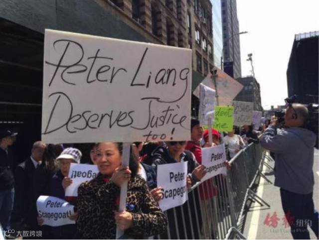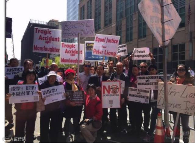 梁彼得判决出来后,一边,华人在欢呼维权获得历史性胜利,而另一边,在法院门外,格雷的阿姨高呼不公正,同样一直在焦急等待着宣判结果的近百名非裔群体高举着“给格雷公正”“梁是凶手”的标语喊叫“让犯罪的警察进监狱!我们没有得到公正,就没有安宁可言!”