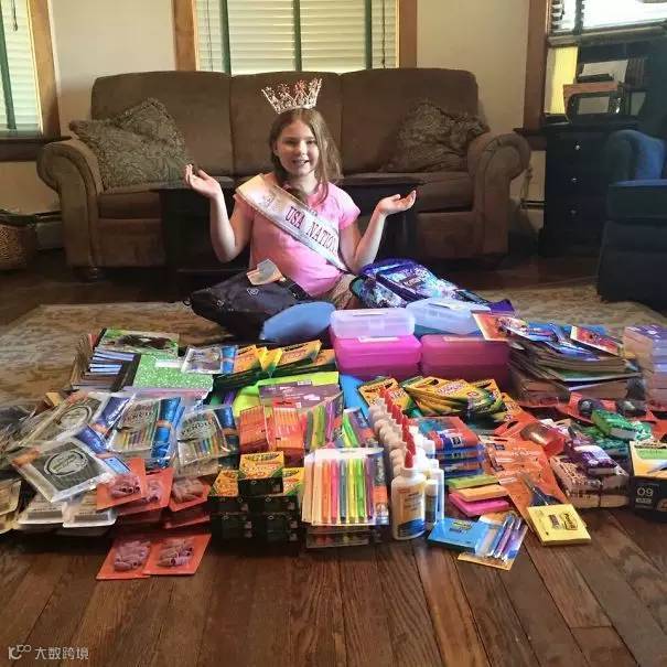 ▼Mackenzie用两次义卖得到的500美金买了很多文具给那些需要文具的小朋友。