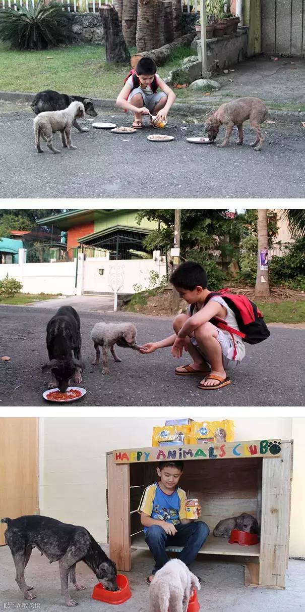 ▼小男孩用自己的零花钱买狗粮送给当地的动物庇护所。