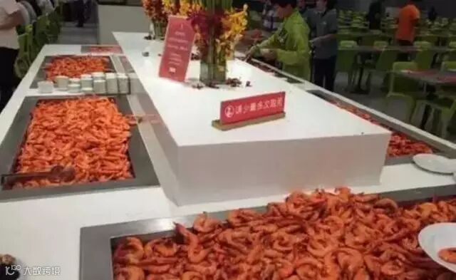 一盘又一盘抢来的大虾,装得满满的,不知道吃得掉吗?
