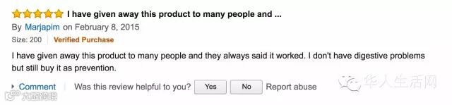 老外评价:“我把这个产品给了很多人服用,他们总说有效。我已经没有消化问题了,但我还在吃它作 为预防”