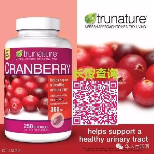 TruNature Cranberry 蔓越莓精华 泌尿健康 250粒 对消炎抗菌,对维护健康的泌尿系统有帮助作用,抗氧化,它所含有的一种被称为proanthocyanidins青花素的物质是一种抗氧化复合物,防止有害的自由基对身体带来的伤害,因此酸果蔓的果实适于那些需要提高免疫力的人士,需要维护泌尿系统的健康,尿道容易受感染的人士和19-50岁的妇女服用。抗癌作用。抑制幽门螺旋杆菌,预防胃溃疡。