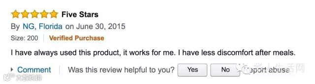 老外评价:“我一直在用这个产品,总是有效。吃完饭以后我会觉得比较舒服”。