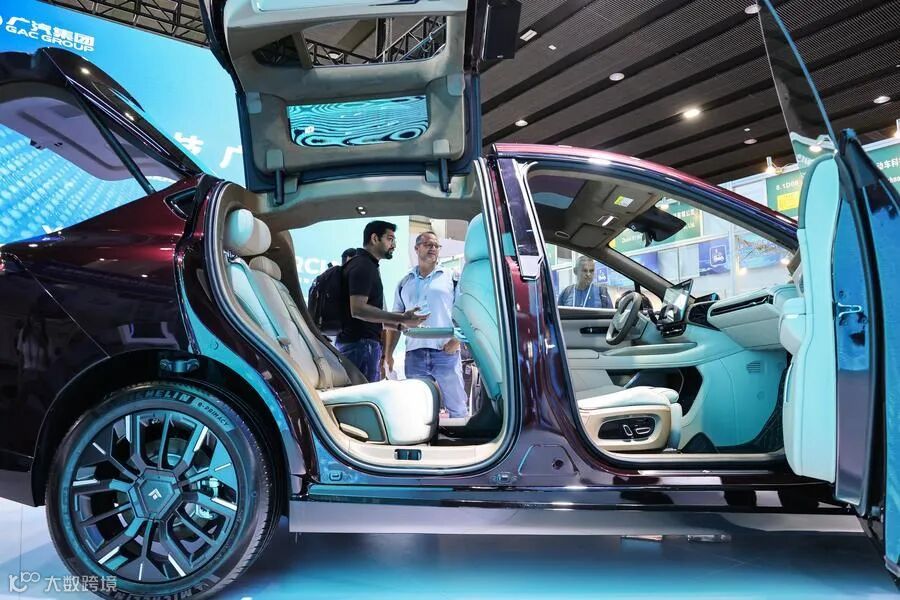 Visitors view a new energy vehicle during the 135th session of the China Import and Export Fair, also known as the Canton Fair, in Guangzhou, south China's Guangdong Province, April 15, 2024. [Photo/Xinhua]