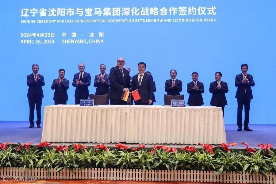 This photo taken on April 26, 2024 shows a scene at the signing ceremony for deepening strategic cooperation between BMW and Shenyang, in Shenyang, northeast China's Liaoning Province. [Photo/Xinhua]