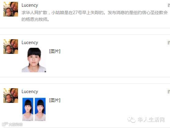 28日,纽约华人的微信朋友圈中有一条信息被大量转发,一名华裔女孩从27日早上10点开始就与家人和朋友失联,直到现在还未见踪影。