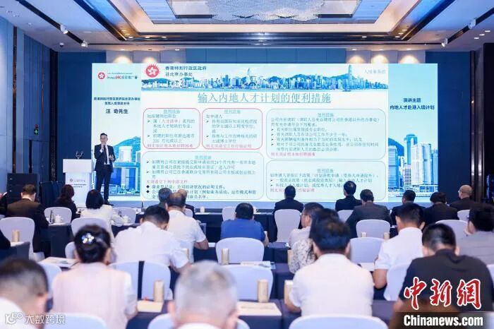 “龙港投资合作推介会”上,香港特别行政区(特区)政府驻北京办事处入境事务组首席入境事务主任汪奇讲解针对内地居民赴港的人才入境计划和服务支持。 活动主办方供图