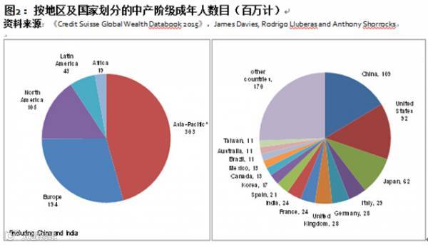 报告显示,全球中产阶级成年人的数目已由2000年的5.24亿名增至2015年的6.64亿名,相当于成年总人口的14%。