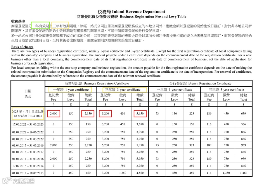 香港税务局发布通知:从今年4月1日起,香港公司商业登记证的登记费从0港币上涨至2000港币!