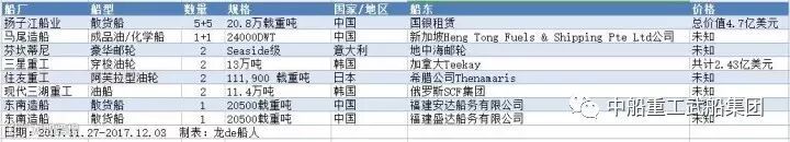 油船领域内,加拿大Teekay在三星重工建造2艘13万吨穿梭油轮,订单金额为2.43亿美元,交付时间为2020年6月;新加坡Heng Tong Fuels & Shipping Pte Ltd公司与马尾造船签订1+1艘24000DWT成品油/化学船合同;希腊公司Thenamaris在住友重工再订造2艘111,900 DWT 阿芙拉型油轮,安排在2020年交付;俄罗斯SCF集团在三湖重工的2艘11.4万吨油船生效。