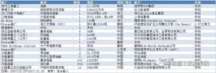 其它船型领域内,长江航道局选择黄埔文冲建造一艘13800立方米自航耙吸式挖泥船,设计工作由708所负责;荷兰Ekofish渔业集团向达门马斯卡特船厂下单一艘双桅拖网渔船,船体将于2018年第一季度在波兰建造,之后由达门马斯卡特船厂进行舾装,预计在2019年第一季度完成;江南造船在中华人民共和国上海海事局、东海航海保障中心大型航标船建造项目招标中成功中标,新船将安排在2019年下半年交付;希腊船东在南通象屿下单2艘新船,具体信息暂未披露;中天科技集团海洋工程有限公司在招商局重工(江苏)订造3艘新船,分别为2艘600吨风电船及1艘1600吨起重船;挪威船厂Kleven承接一艘100米探险船订单,将与德国豪华游艇设计和建造公司Lürssen合作交付;挪威Midt-Norsk Havbruk公司在挪威船厂VARD Holdings Limited建造1艘水产养殖服务船;阿联酋阿布扎比港务公司(ADPC)在土耳其Sanmar船厂下单订造了2艘150gt拖船,将在2017年11月和2018年3月交付。