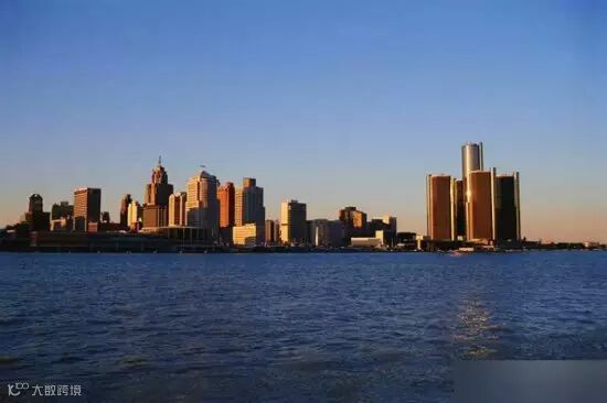 落日余晖下,夕阳把底特律映衬的辉煌而美丽。