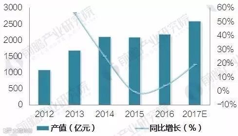 海洋工程建筑业包括海港建筑、滨海电站建筑、海岸堤坝建筑、海洋隧道、桥梁建筑、海上油气田陆地终端及处理设施建造、海底线路管道和设备安装。2011年以来,我国海洋工程建筑产值由1075亿元增长至2016年的2172亿元,五年时间增长了102.0%。