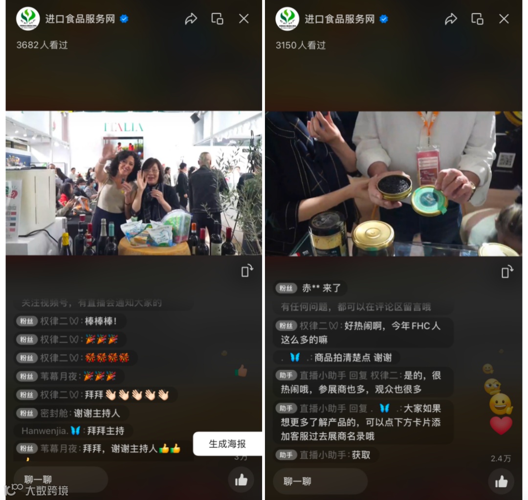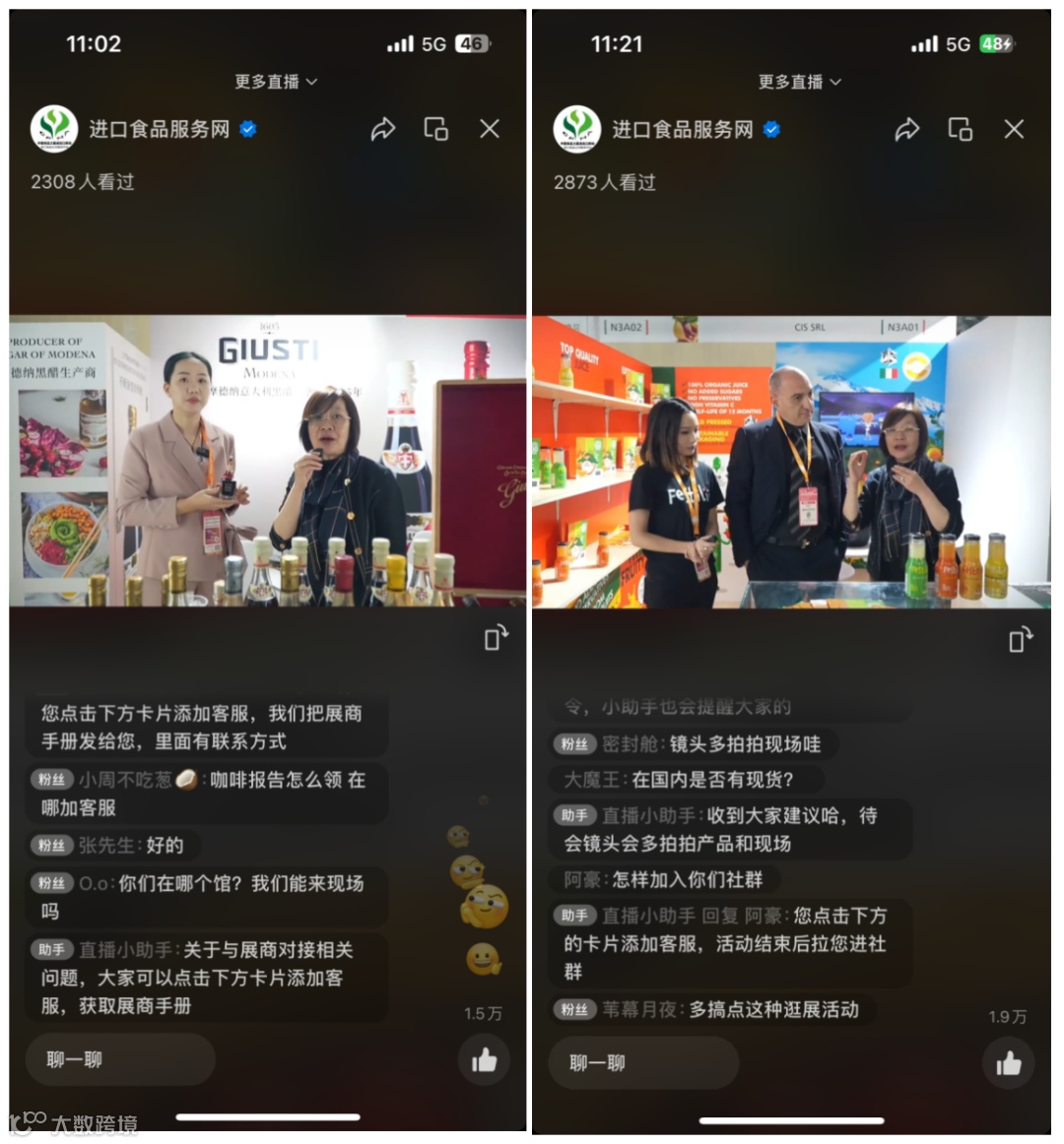 2024年11月13日上午,意大利对外贸易委员会上海代表处联合进口食品服务网,在FHC展会现场成功举办【小进逛展·“云游”意大利国家馆】直播活动,为观众全方位呈现了意大利国家馆的独特魅力和多样风采。为期3小时39分的直播活动吸引了4000多位专业买家观看,收获点赞互动超30,000次,观众热情空前高涨。