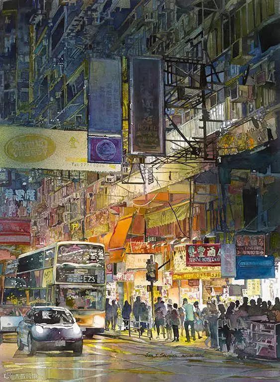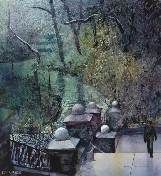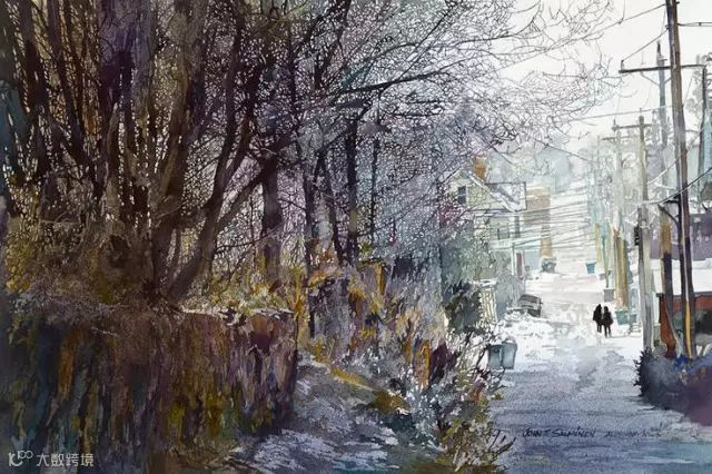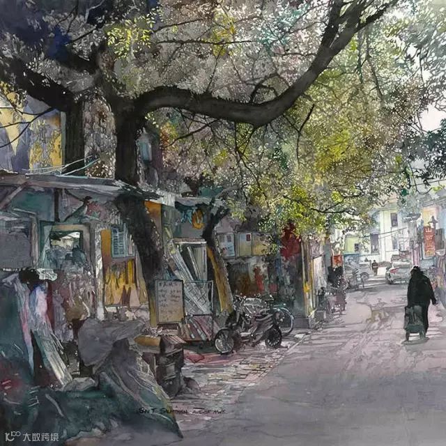 这些水彩画,总让人想起往日的旧时光,想起木心先生那首诗《从前慢》。