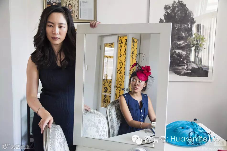 摄影师Lauren Greenfield拍摄了一组反映当今中国富人阶层生活的照片。图为何佩嵘(Sara Jane Ho)正在教Jessie Wen如何正确地戴一顶帽子。她是北京一家高端精修国际礼仪培训中心(Institute Sarita)的创始人,29岁的何佩嵘认为尽管在中国,财富一直在增长,但是很多人仍然缺乏更为优雅大方的礼仪和举止,特别是中国的富人阶层。