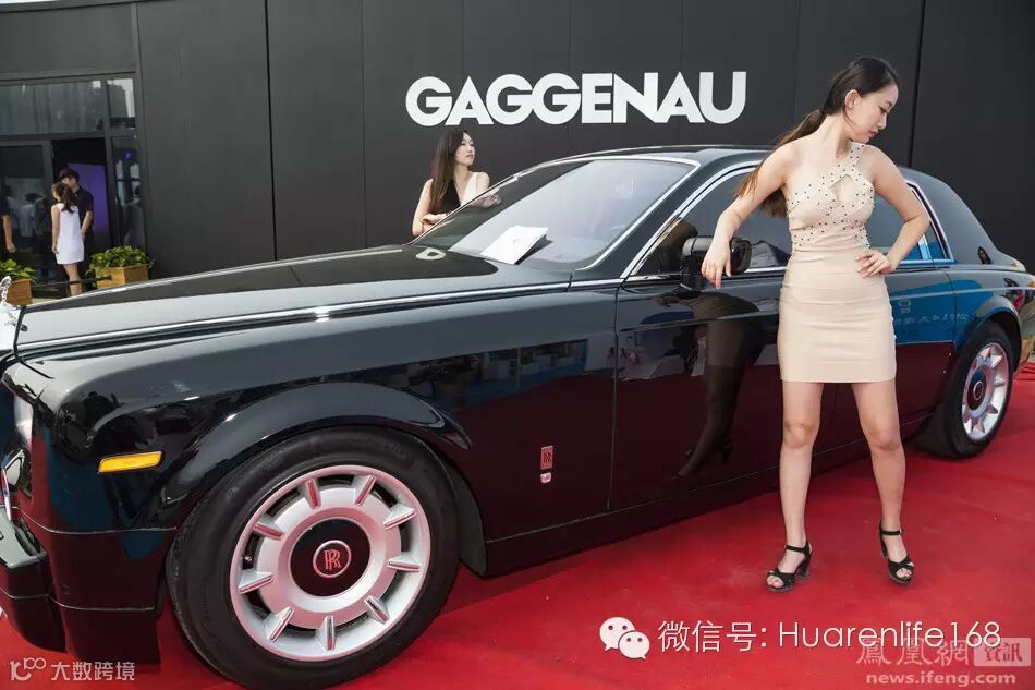 劳斯莱斯旁的两个模特。