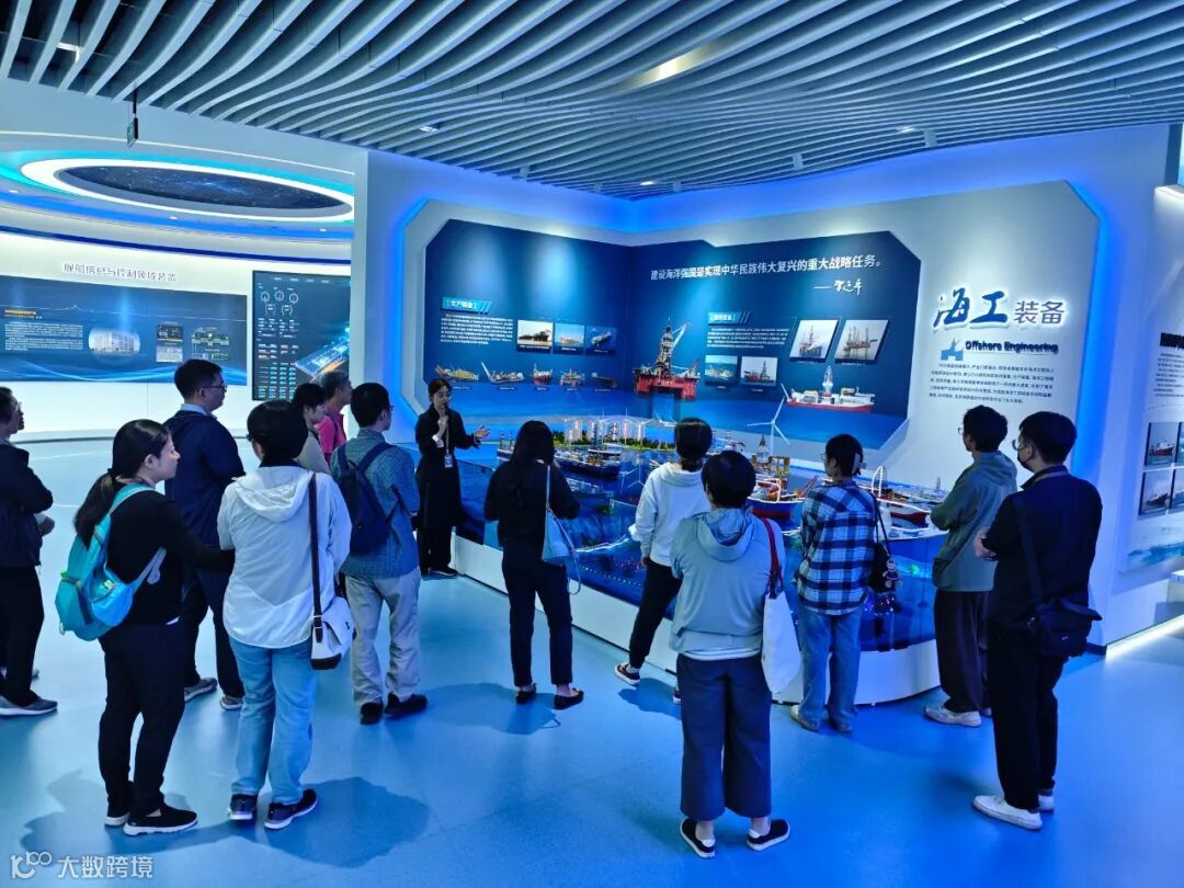 在七〇八所企业形象展示中心设置有三个展区:主题依次为「起航·向海而生」、「扬帆·向海图强」和「传承·向海而兴」。每个区域都通过细致生动的图文介绍,向参观者全面展示中国船舶集团第七〇八研究所的发展历程、历史关键时刻以及舰船装备的相关知识。