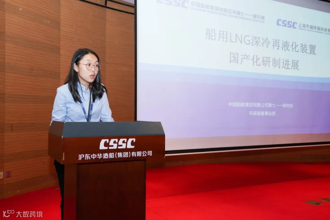 中国船舶集团有限公司第711研究所环装事业部副主任冯静娅作题为《船用LNG深冷再液化装置国产化研制进展》的主题报告。从四个方面介绍了LNG船再液化原理和不同技术路线,重点阐述了711所自主开发的LNG深冷式再液化装置产品技术特点及性能验证和测试方法,围绕14000方LNG加注运输船案例展开,系统介绍了1t/h深冷再液化装置的实船安装及应用情况。