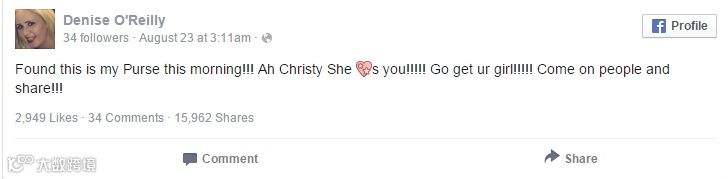 事情大概是这样的,一个叫Denise 的女人上周末的时候无意中发现她包包里有一张20元的钱上留下一句非常伤心的留言。