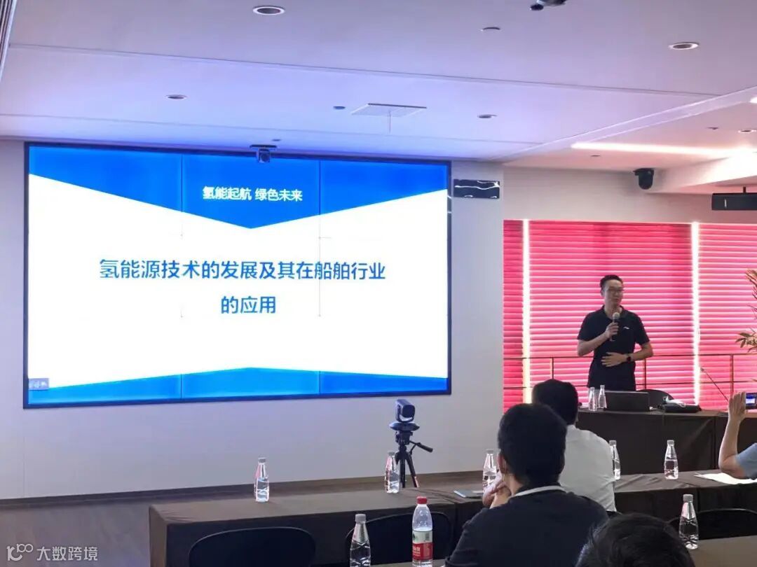 季山博士长期从事燃料电池和锂电池相关的研究和产业化工作,曾就职于南非氢能系统研究院等单位,在无机材料纳米制备、复合功能材料、燃料电池研发及产业化、锂电池产业化方面积累了丰富的经验。目前他任职的常熟市氢能源研究院有限公司,主要以氢燃料电池部件及系统研制、测试等为主攻方向,重点发展膜电极、电堆、双极板、催化剂、动力系统等燃料电池的关键技术,并开拓氢燃料电池在船舶等领域的应用以及检验检测等业务。季山博士向与会人员介绍了国内外氢能产业背景、未来氢能应用市场以及氢能源船舶的优势等,详细阐述了氢燃料电池的工作原理以及核心部件和技术,同时针对国内新能源船舶的发展现状,就船舶选择何种新能源、怎样储存氢气等问题上表达了自己的观点和建议。