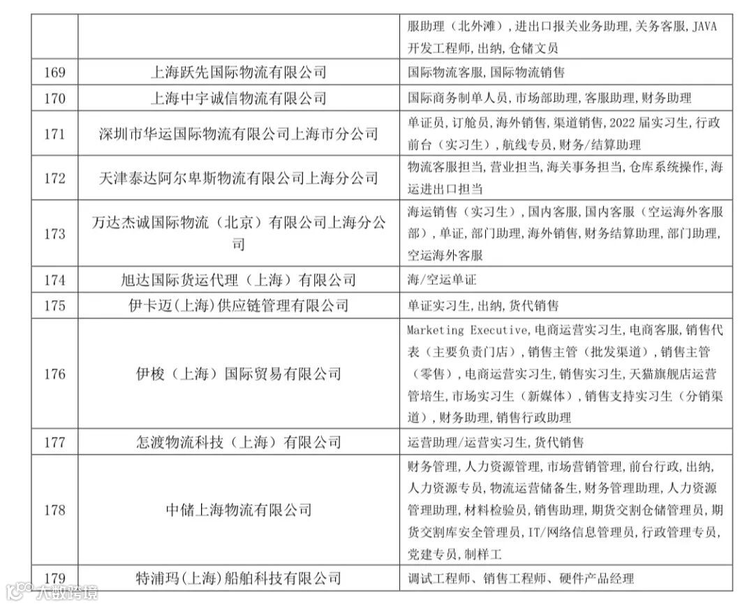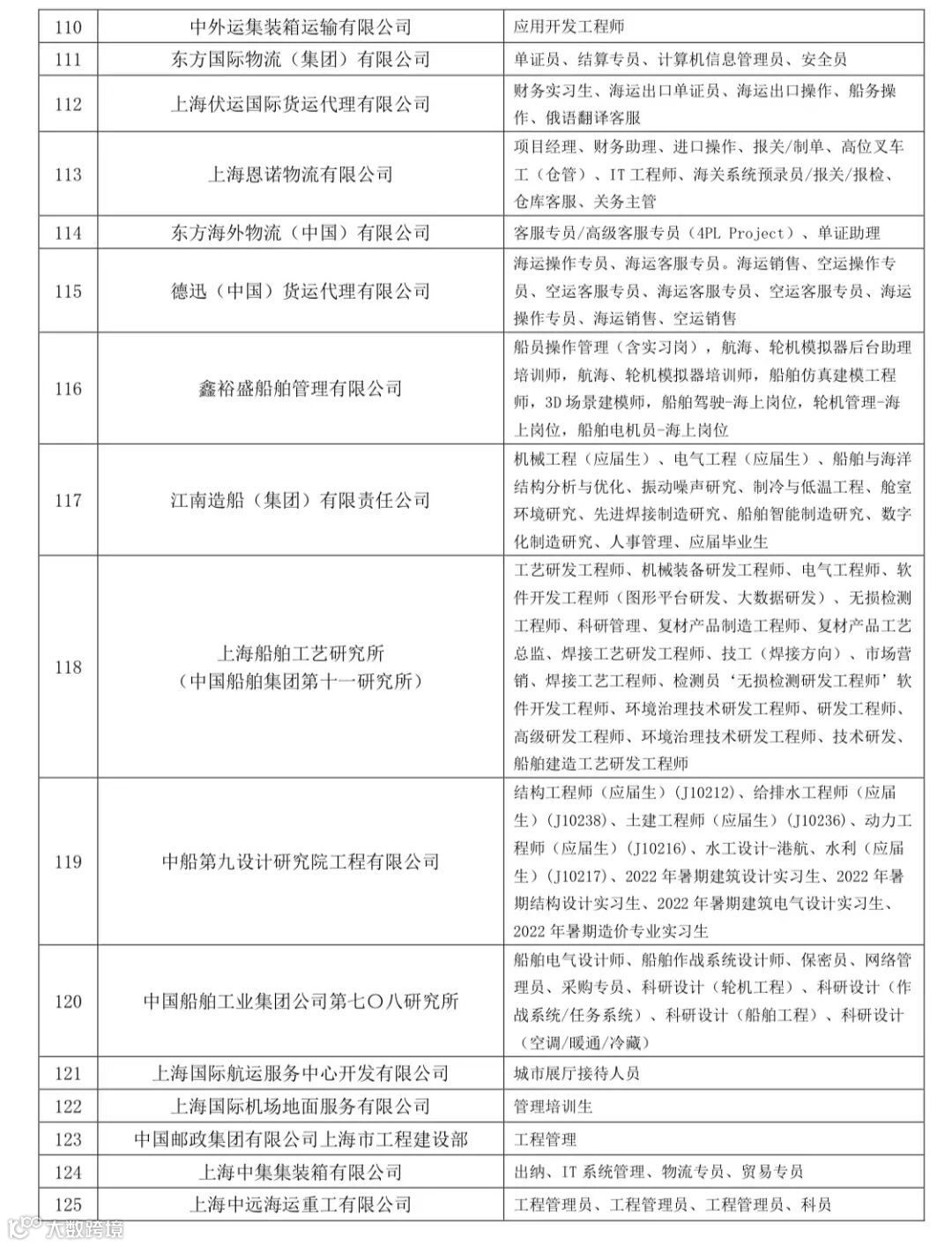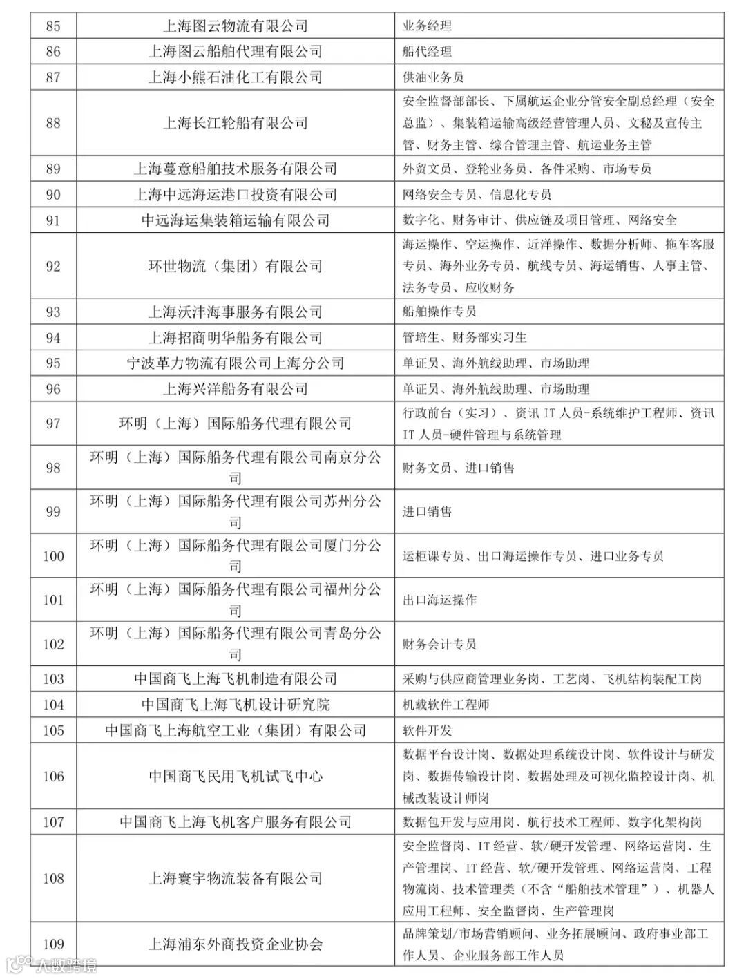 浦东新区商务委(航运办)联合上海组合港管委会办公室、上海市人才服务中心国际航运分中心等单位搭建平台,举办的2021第四届上海自贸试验区及长三角航运企业展示和专业人才线上招聘活动,将于11月12日(周五)下午12:00举行。本次活动参与企业共计179家,包括国企、民营企业、外资企业和国际功能性机构;招聘岗位数量近800个,招聘人数超过2800人,行业涉及海运和航空运输,航运金融、信息咨询、保险、法律、船舶制造、航运科技、供应链管理等。(企业排名不分先后)
