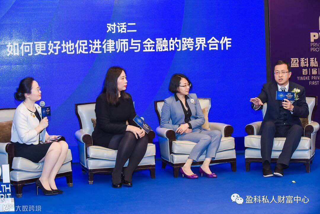 第二场对话的主题是《如何更好地促进律师与金融机构的跨界合作》,分享的嘉宾一共有六位,分为两组,第一组的嘉宾是:中伦上海律师事务所的合伙人贾明军律师,笨鸟俱乐部的创始人,知名的婚姻财富管理律师;德裕世家家族办公室业务总监魏玲女士,魏总有超过十五年以上的商业银行从业经验,先后在花旗银行、瑞银集团为上百位超高净值的客户提供个人及家庭的财富管理;宜信财富总经理鲁海洋女士,曾任职于恒生银行私人银行(香港)和花旗银行(中国)信贷部。在第一组嘉宾对话中,接地气、陪伴式地与客户交往,深入了解客户的需求,赢得客户真正的信任一直是对话的焦点,贾明军律师说在面对客户的时候要懂得用加法,在选择金融机构的时候要学会用减法。