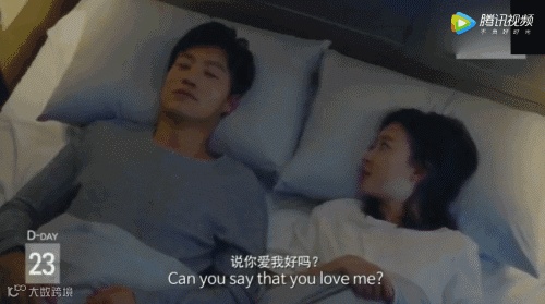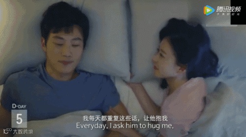 第七天,睡觉前的“我爱你”,丈夫有点抗拒,背过身去像小学生完成作业般。