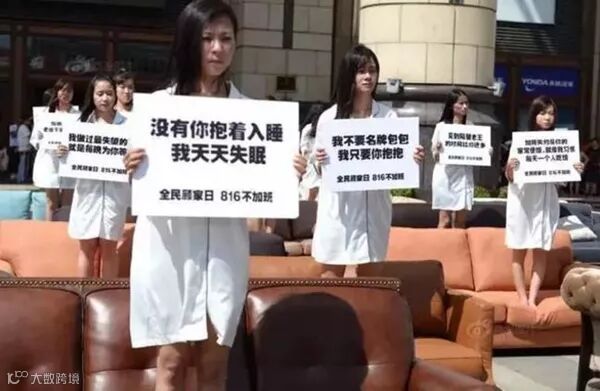 上海街头曾经做过这样的活动,在人来人往的广场上,几十位穿着丝质睡衣的妻子,站在沙发上,发出对婚姻里爱意沉睡的抗议。