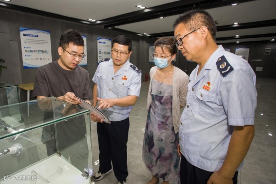 图为江苏省扬州市江都区税务干部来到科技企业走访问需,为企业排忧解难。