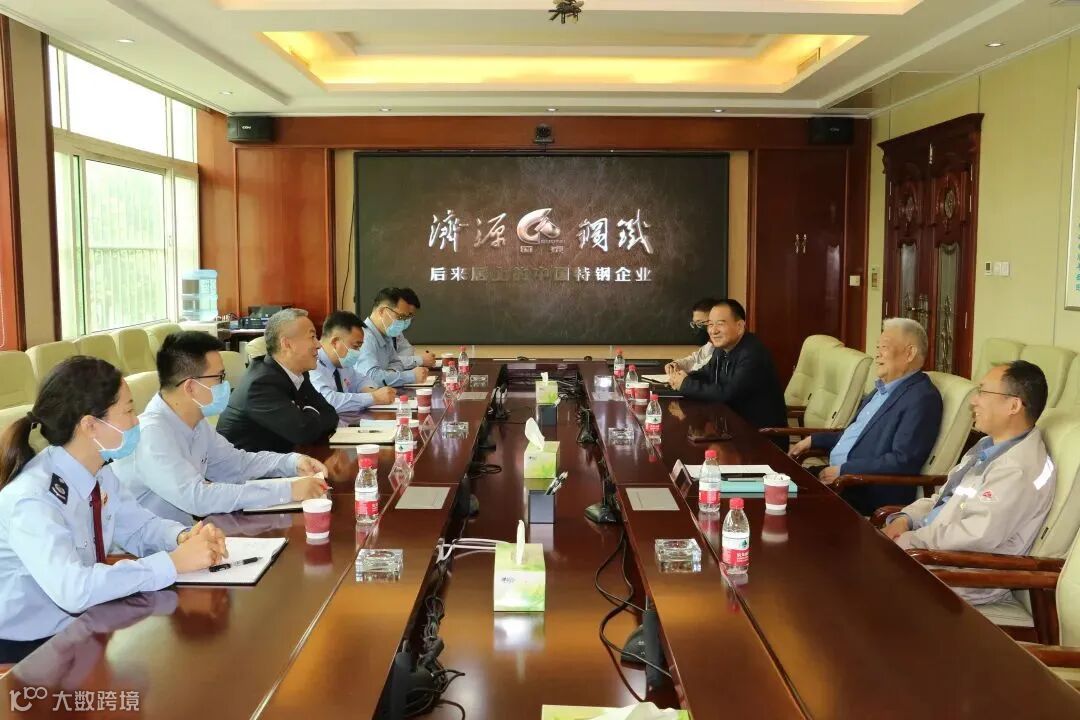 图为河南省济源产城融合示范区税务干部走访钢铁公司,讲解新的组合式税费支持政策,帮助企业纾困解难。吕必锋/摄