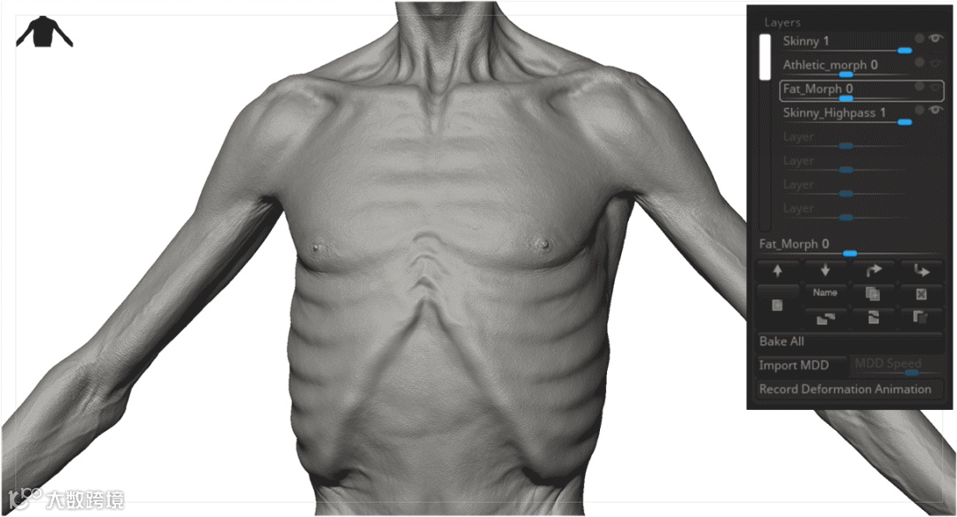 使用Zbrush中的图层滑块,您可以轻松控制基础网格的主体类型。