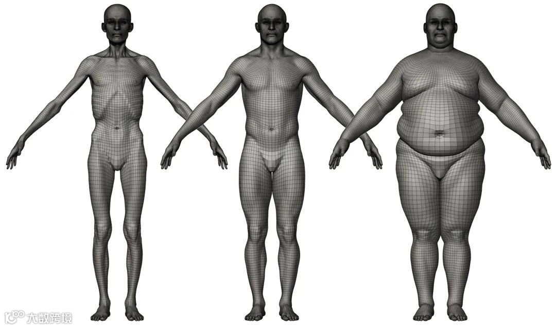 Zbrush工具有6个细分/层来控制身体类型(需要最新版本的 Zbrush)。