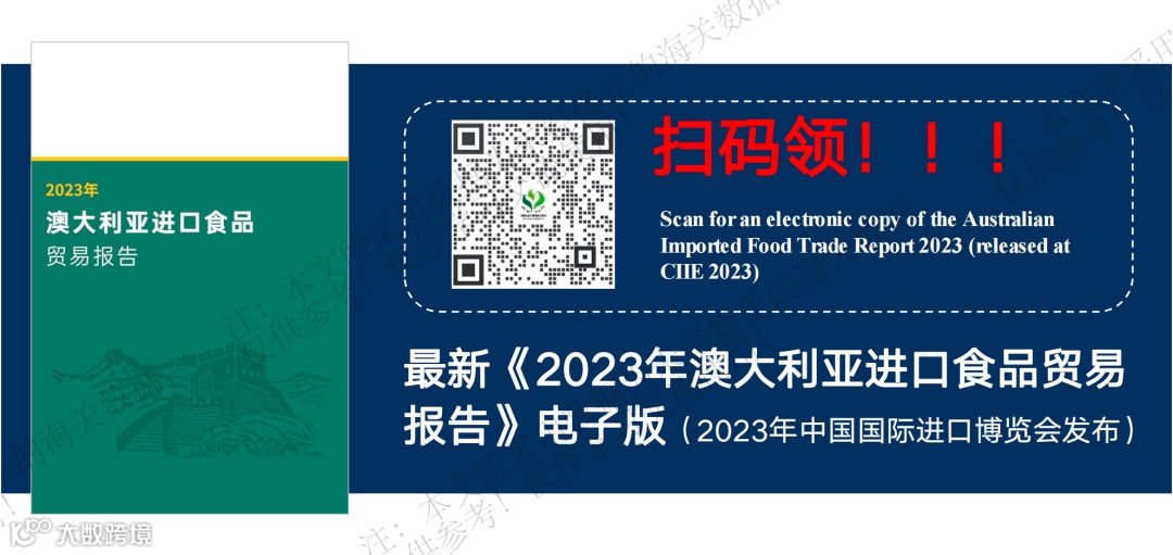 近五年,虽然两国国际经贸虽有波折,但2022年,自澳大利亚进口食品达到历史最高:84.6亿美元,在中国所有来源地中排名第六位,与2018年相比,进口金额增长1.3倍,进口总量增长1.4倍。